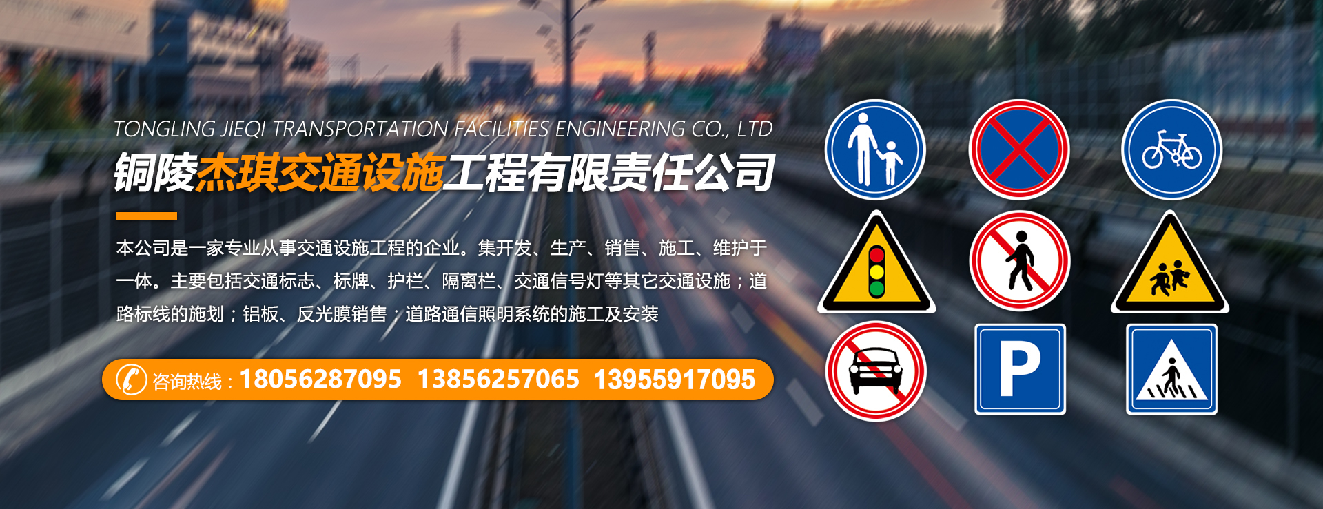 銅陵市杰琪交通設施工程有限責任公司成立于2010年5月,是一家專業從事交通設施工程的企業。集開發、生產、銷售、施工、維護于一體。主要包括交通標志、標牌、護欄、隔離欄、交通信號燈等其它交通設施;道路標線的施劃;鋁板、反光膜銷售;道路通信照明系統的施工及安裝。